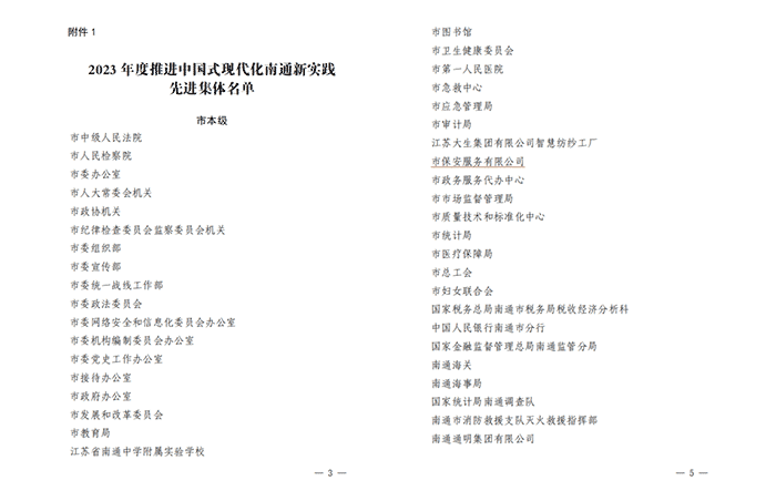 喜報——南通保安公司榮獲“2023年度推進中國式現(xiàn)代化南通新實踐先進集體”稱號