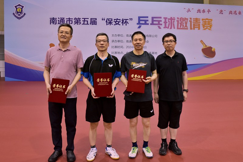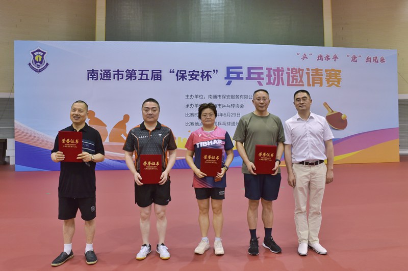 6月29日,南通市第五屆“保安杯”乒乓球邀請(qǐng)賽在開(kāi)沙島中國(guó)乒乓球通州訓(xùn)練基地成功舉辦。賽事由南通市保安服務(wù)有限公司主辦,南通市乒協(xié)承辦。市國(guó)資委副主任、二級(jí)調(diào)研員于海華,市乒協(xié)主席侯軍,城建集團(tuán)副總經(jīng)理董新平,保安公司董事長(zhǎng)方俊,市乒協(xié)副主席、秘書長(zhǎng)張進(jìn)出席開(kāi)幕式。