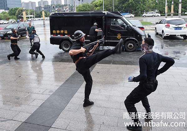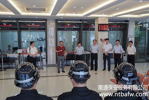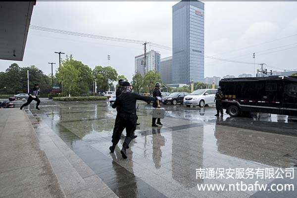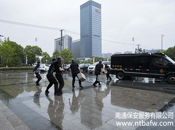 6月24日下午15:30,南通市保安服務(wù)有限公司押運(yùn)分公司在工商銀行開6月24日下午15: 30,南通市保安服務(wù)有限公司押運(yùn)分公司在工商銀行開發(fā)區(qū)星湖支行進(jìn)行押運(yùn)突發(fā)事件應(yīng)急處置演練。 南通城建集團(tuán)副董事長(zhǎng)姚曉明,工行內(nèi)控合規(guī)部(安全保衛(wèi))總經(jīng)理王大勇、副總經(jīng)理茅建平等領(lǐng)導(dǎo)在 公司領(lǐng)導(dǎo)的陪同下到現(xiàn)場(chǎng)觀摩。