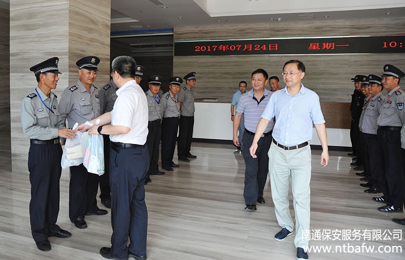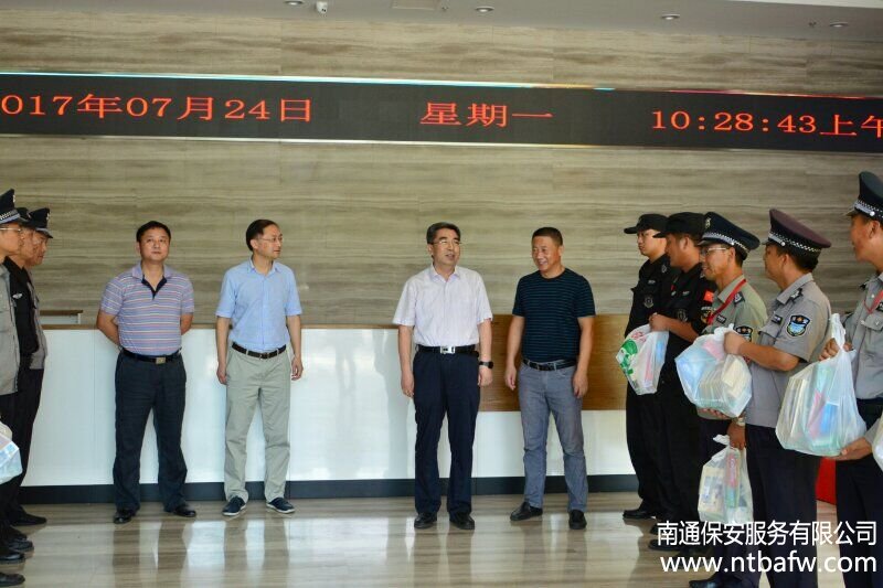 7月24日上午,城建集團(tuán)董事長(zhǎng)李維賢、副總經(jīng)理施焱、朱峭嶸在公司董事長(zhǎng)沈鑫華等陪同下,慰問了冒高溫堅(jiān)守一線崗位的保安隊(duì)員,送上了防暑降溫用品。