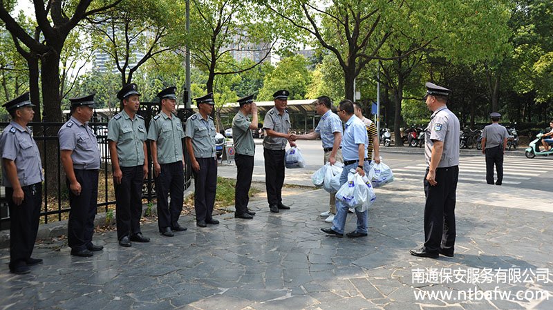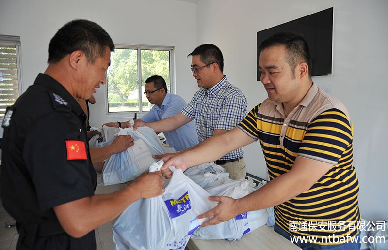 連日來,高溫持續(xù)。對于堅守在一線崗位的保安隊員,牽動著公司領導的心。7月25日,公司總經(jīng)理方俊、總經(jīng)理助理袁杰、工會副主席陸益輝慰問了行政中心、華能電廠、默克公司等駐點保安隊員,送上防暑降溫用品,并仔細詢問隊員的作息時間和工作情況,囑咐隊員做好防暑降溫工作。